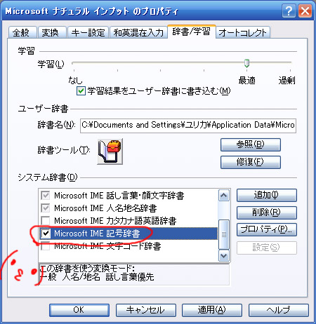 おいらIME記号辞書ってなんかちゃんとチェック入ってたのに
